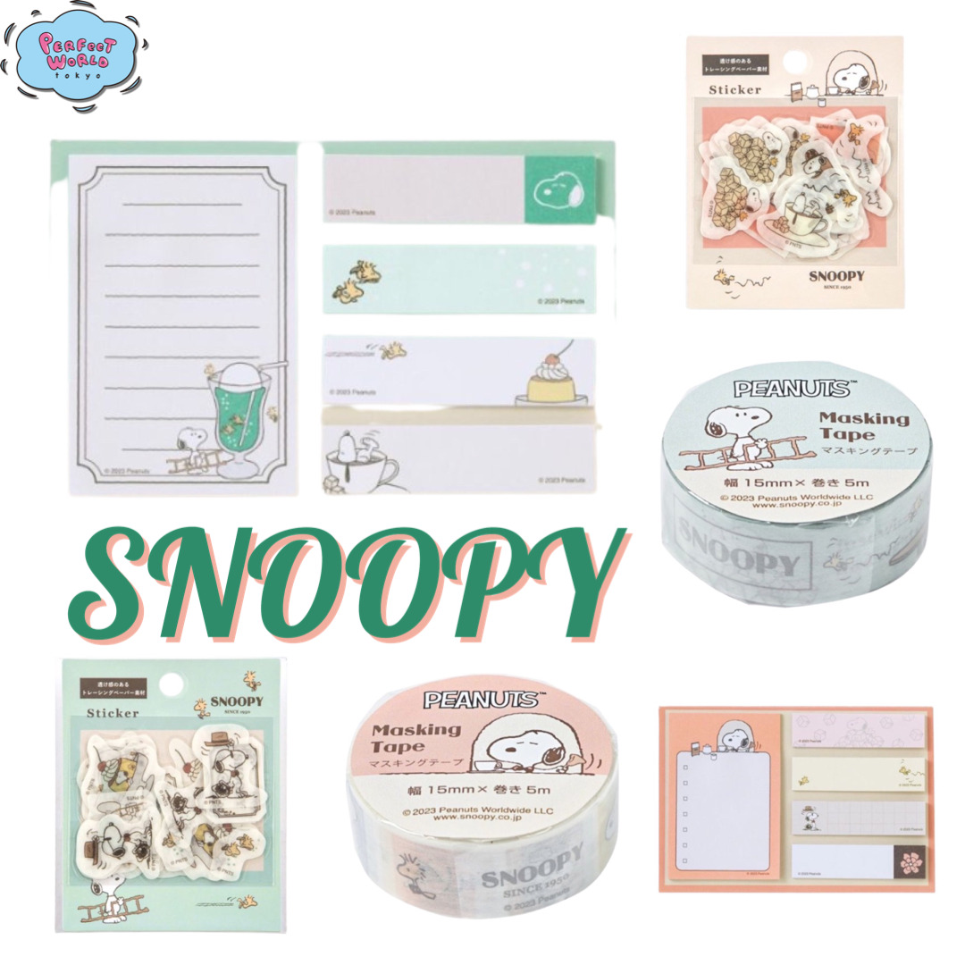 你好!我是东京完美世界的虚拟记者Sekai!女士们,先生们,喝茶时间是一天中最快乐的时刻之一,你也可以趁机喘口气。我们要向你介绍一些史努比的物品,这些茶水时间的插图可以帮助你放松。这些可爱的物品可以用于笔记本、信件、包装小礼物和许多其他用途。请看看它们吧!