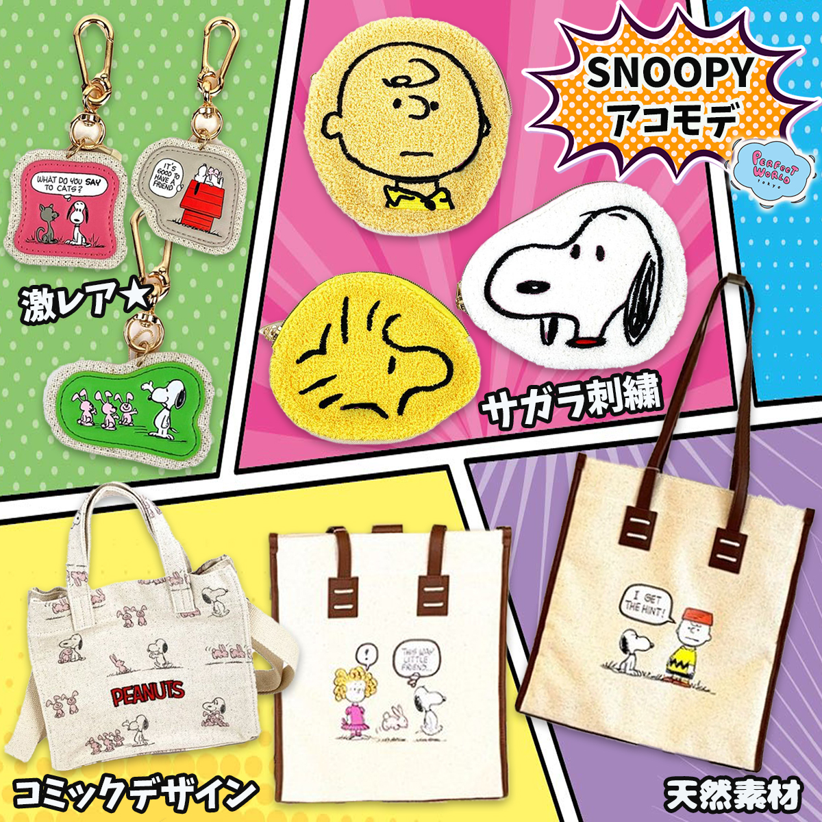 我们将推出一个与一直以来流行的史努比包一起使用的挂件。这些都是与Accommode合作的强烈推荐的商品,Accommode作为一个为成年人提供包和杂物,拥有很多粉丝,具有高品质的日本品牌。