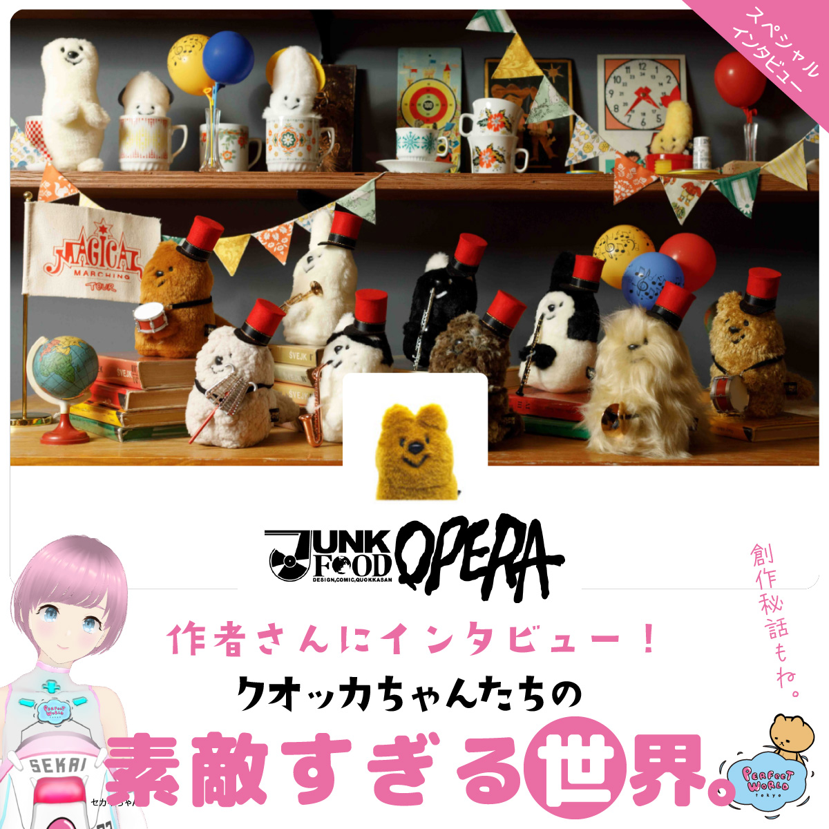 作者访谈!我们无法将视线从 Quokka-chan 上移开!Sekai 带您走进人气毛绒玩具艺术家 JUNK FOOD OPERA 的世界。