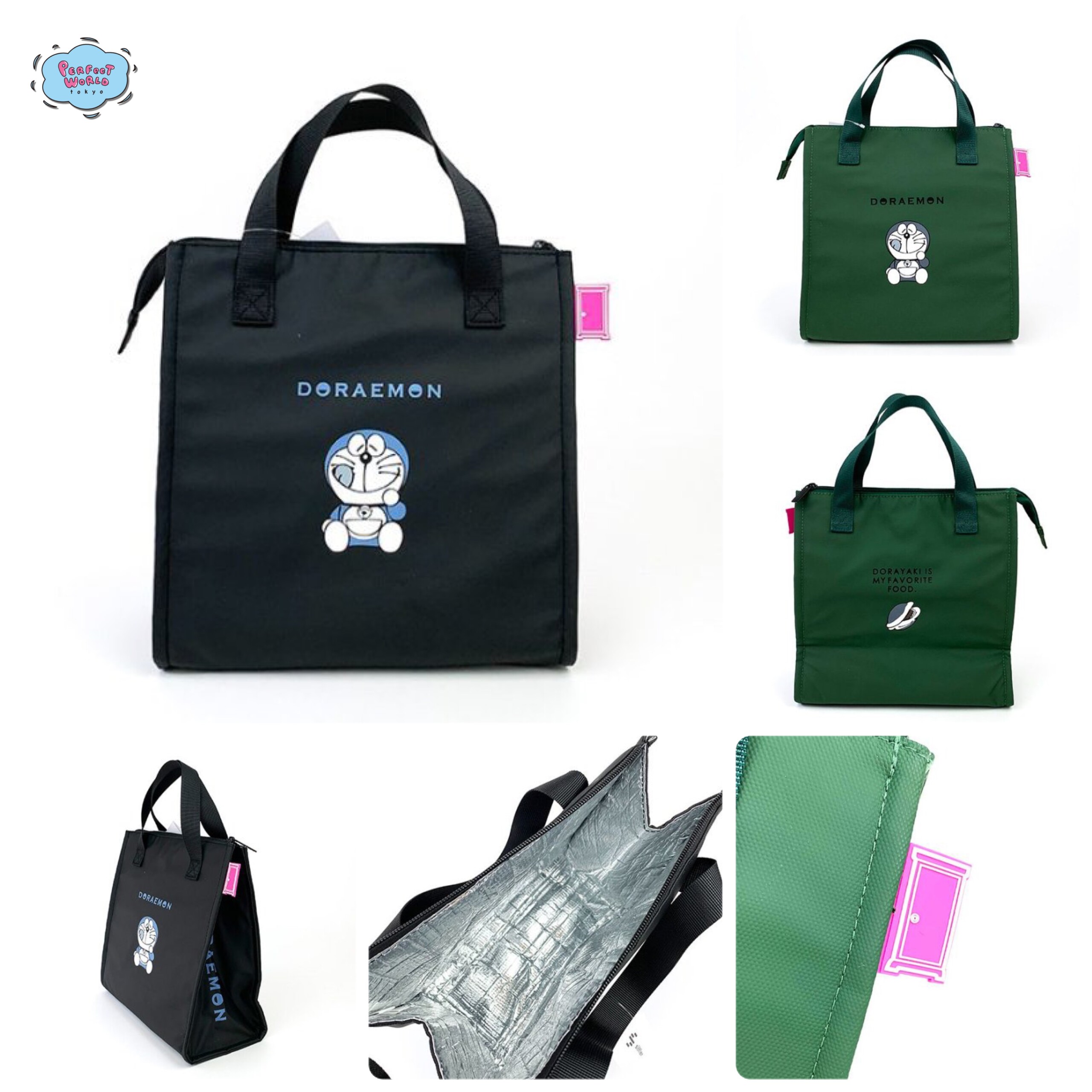 哆啦A梦,保温午餐包,黑色,绿色,完美世界东京,新,商品,大容量,方形,休闲,。